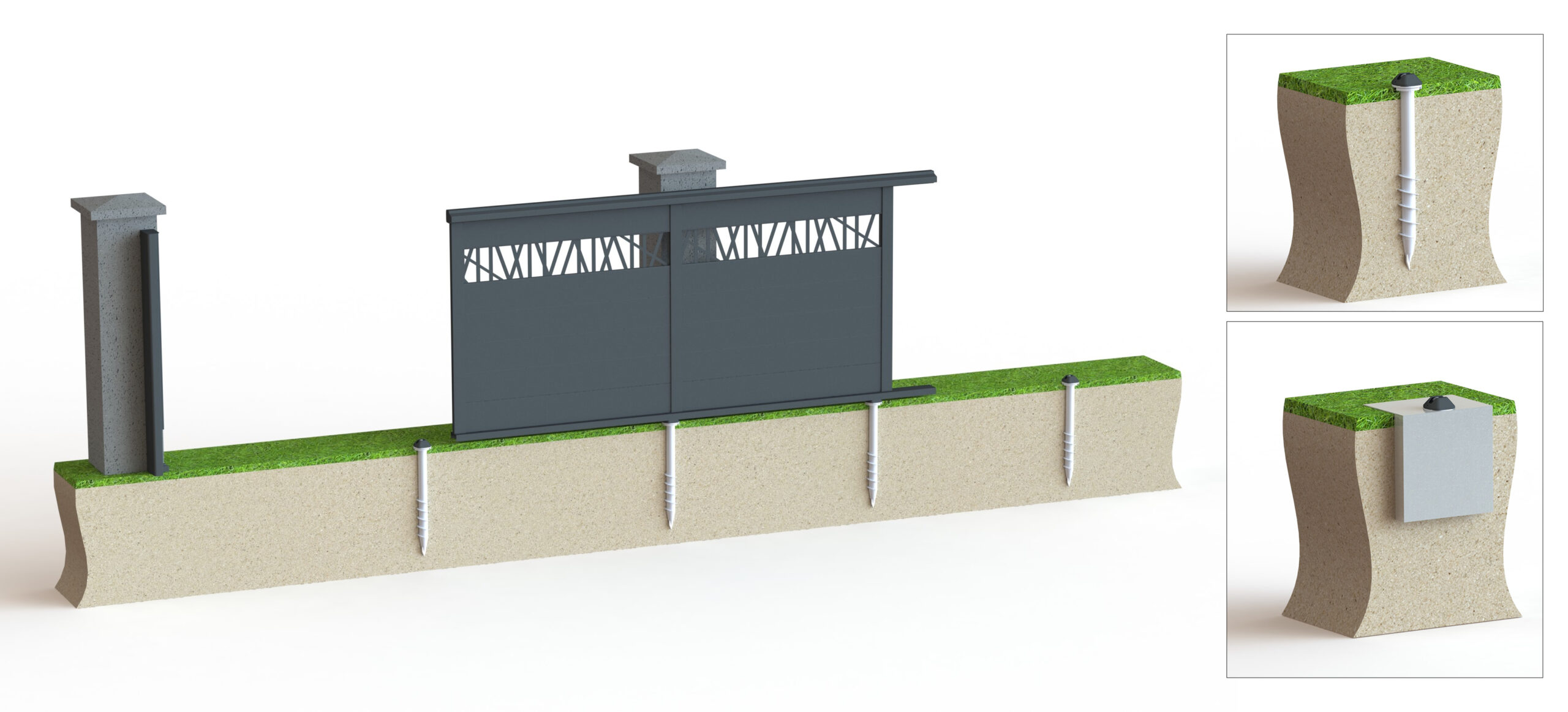 L’Art Slide Technology (AST) réduit considérablement la nécessité de maçonnerie. En fait, dans de nombreuses installations, il est possible de s’en passer complètement en utilisant des pieux d’ancrage. Cela signifie qu’au lieu des deux interventions distinctes nécessaires auparavant (une pour la maçonnerie et une autre pour la pose du portail), il est désormais possible d’installer un portail coulissant en une seule intervention.